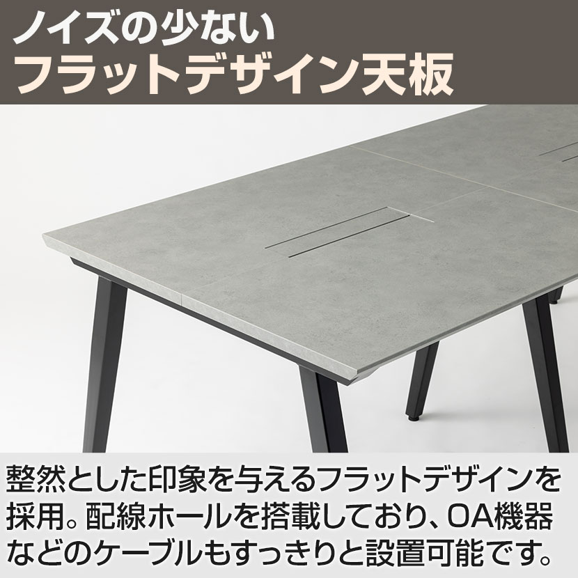ミーテングルームに整然とした印象を与えるフラットデザインを採用。配線ホールを搭載しており、OA機器などのケーブルもすっきりと設置可能です。