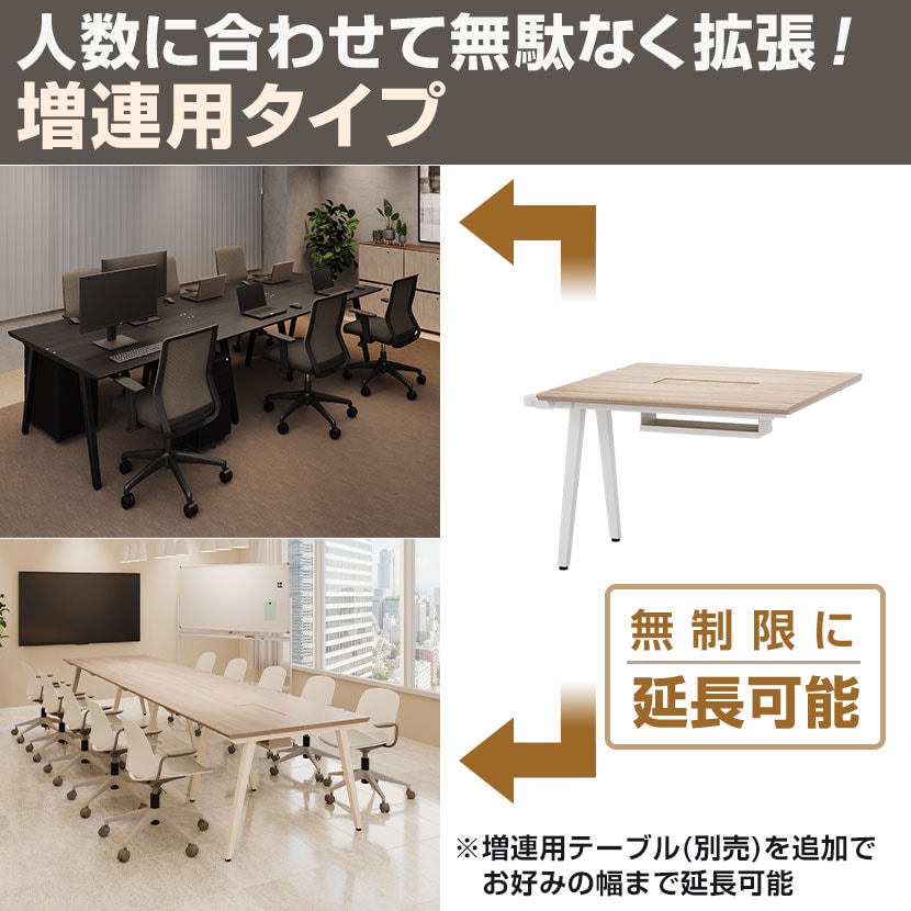 モダンなデザインと機能性を両立する「EXELEGAミーティングテーブル」専用の「増連用テーブル」です。ミーティングテーブル本体を購入後、必要数に合わせて1000mm単位で連結可能。EXELEGAのデザイン性と機能性を保ちつつ、テーブルスペースを理想の規模に拡張します。※増連用タイプのため、単体では使用できません。