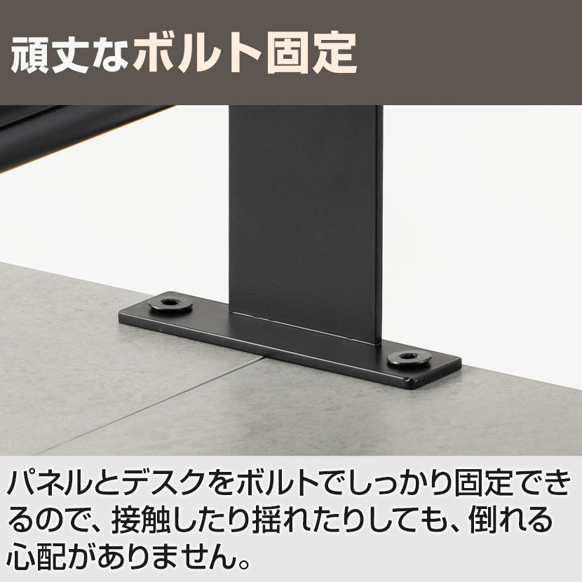 パネルとデスクをボルトでしっかり固定できるので、接触したり揺れたりしても、倒れる心配がありません。