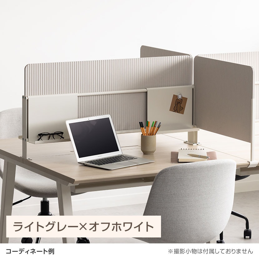 パネルには空間に馴染みやすいニュートラルカラーを採用。デスクのモダンなデザインに調和します。