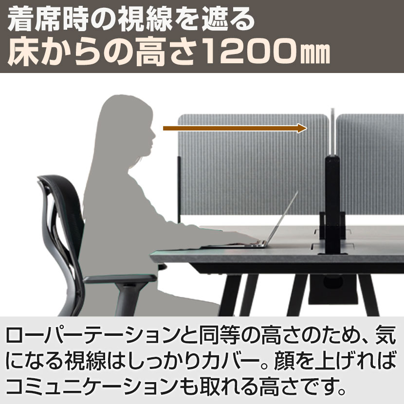 ローパーテーションと同等の高さのため、気になる視線はしっかりカバー。顔を上げれば、周囲とのコミュニケーションも取れる程よい高さです。