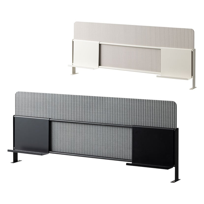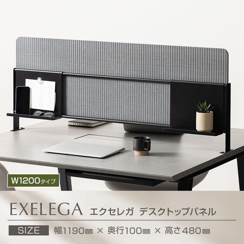 モダンなデザインと機能性を兼ね備えた「EXELEGAフリーアドレスデスク」専用のデスクトップパネルです。カラーはライトグレーxオフホワイト、ダークグレーxブラックの2色をご用意。対向席からの視線を遮って適度なプライバシーを確保し、集中しやすい環境をつくります。付属のマルチトレーにはタブレットや小物を置けるため、天板を広く使えて作業効率もアップします。