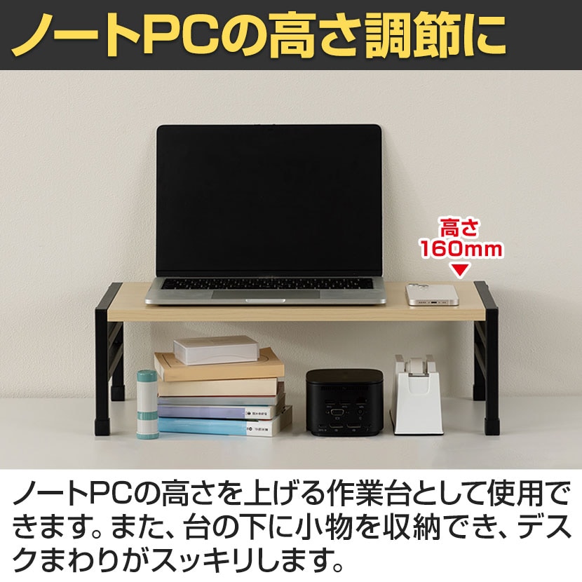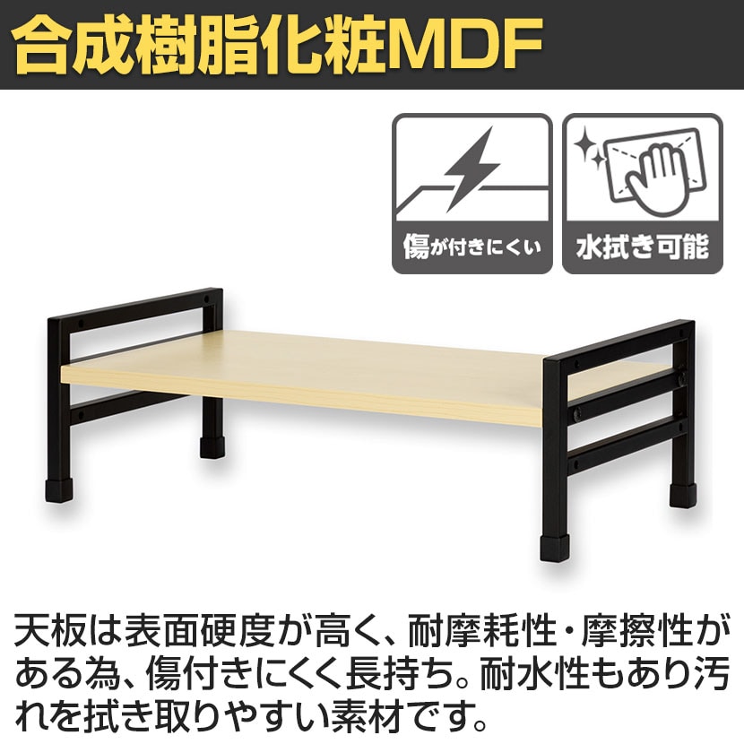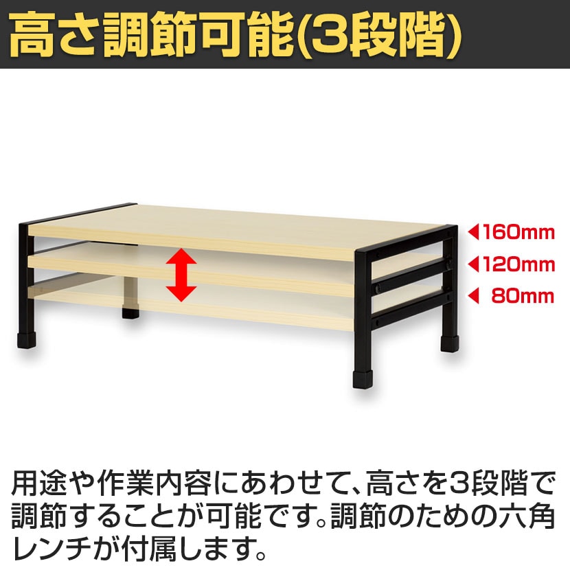 3段階に高さ調節可能で好みの高さを選べる机上ラックです。