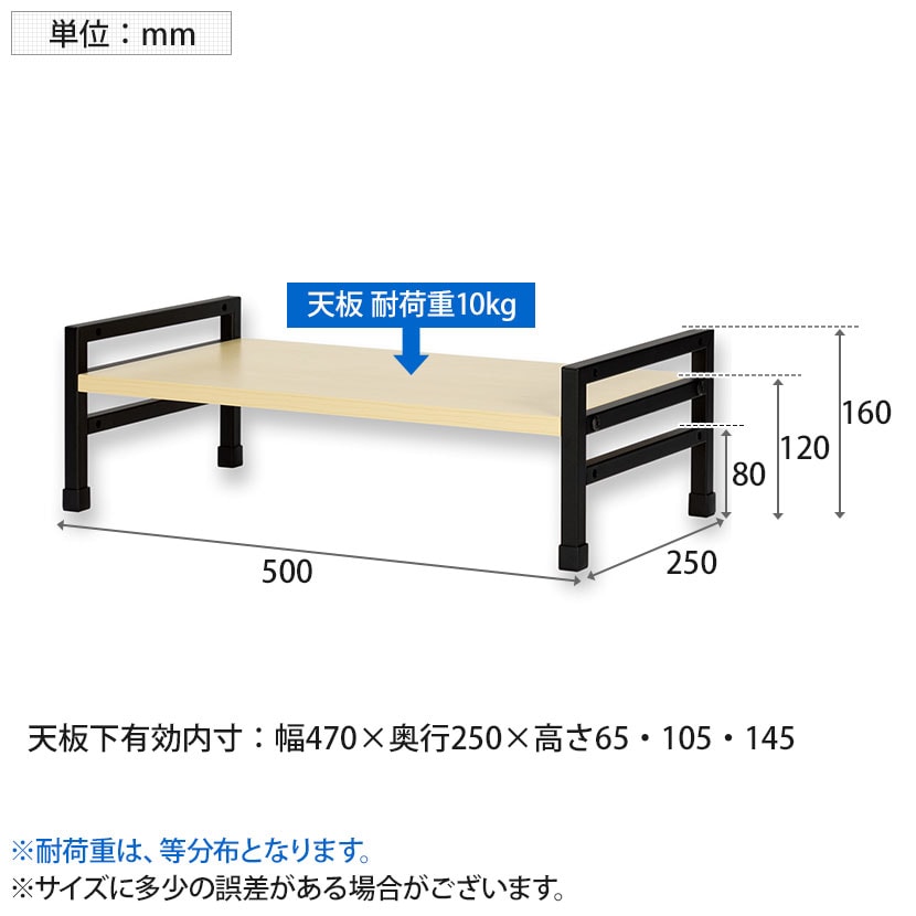 天板下有効内寸 / 幅470×奥行250×高さ65・105・145mm