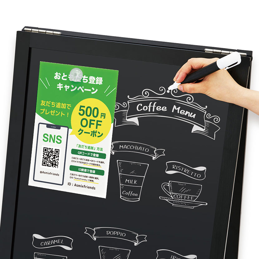 チョーク、マーカー、マグネットを使用できる汎用性の高いスタンドです。
