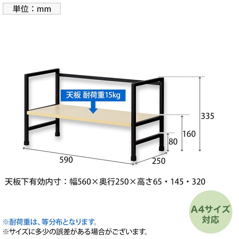 天板下有効内寸 / 幅560×奥行250×高さ65・145・320mm