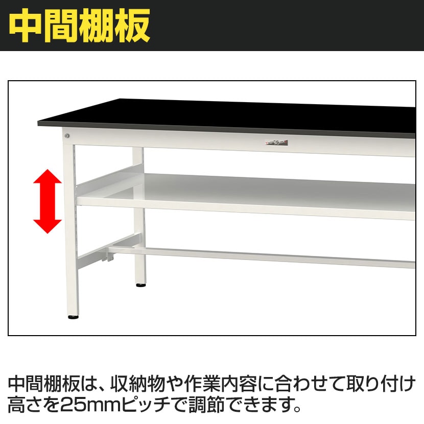 ・この商品の脚には、スリット穴があります。中間棚の高さを25mmピッチでご自由に調節いただけます。