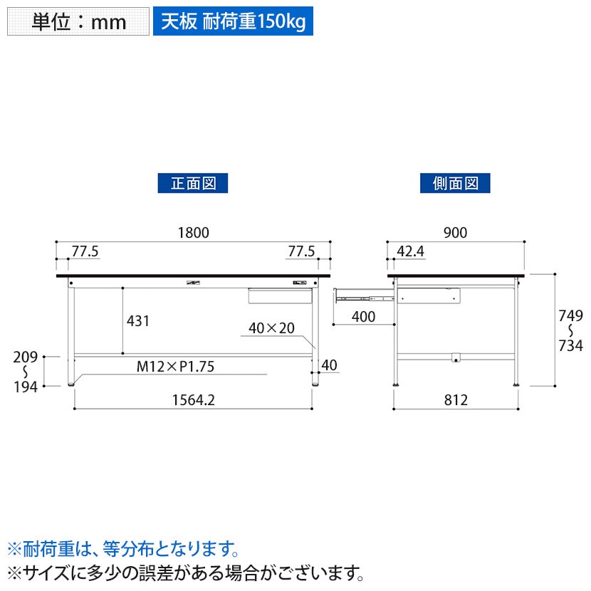 ・リーズナブルな耐薬品仕様の作業台です。