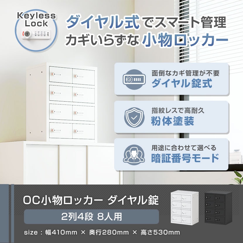 カギいらずでスマート管理。ダイヤル錠小物ロッカー/2列4段 8人用
