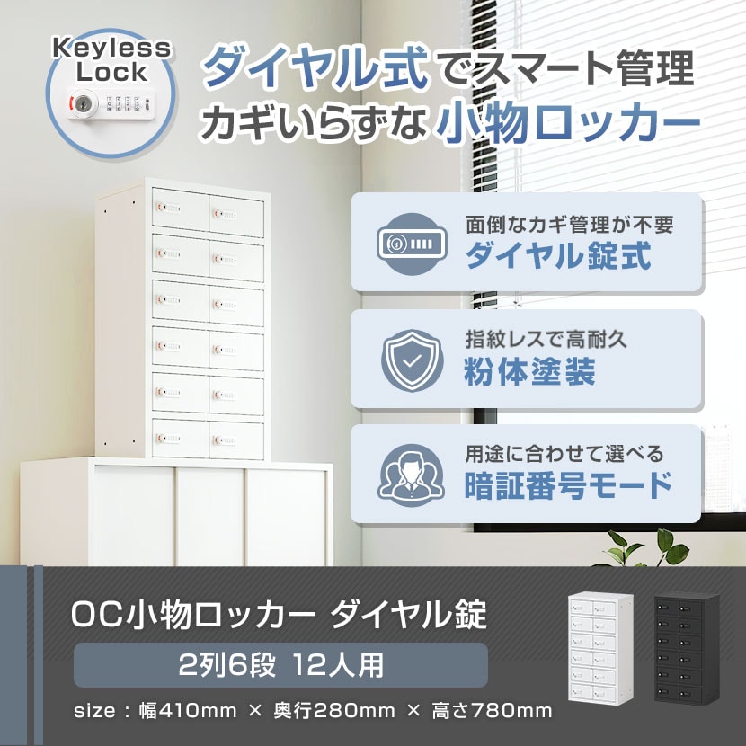 カギいらずでスマート管理。ダイヤル錠小物ロッカー/2列6段 12人用