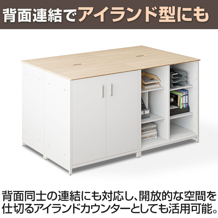 背面同士の連結にも対応しており、開放的な空間を仕切るアイランドカウンターとしても活用可能。レイアウトの自由度が向上します。
