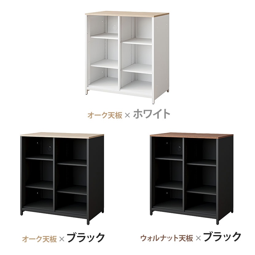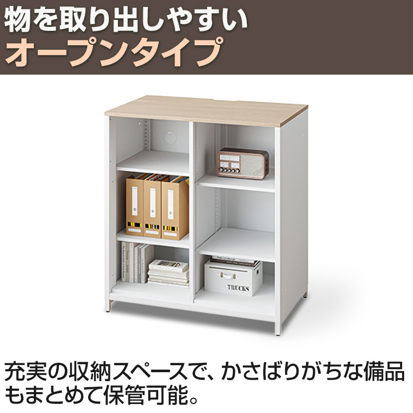 雑多に見えがちなオフィスの一角を、美しく機能的なカフェコーナーに。OCシリーズスチール収納カウンター(オープンタイプ/フラット天板)は、備品をすっきりと収納しながら、コーヒーマシンも設置可能。面倒な配線や給排水もスマートに整理でき、理想のリフレッシュスペースを手軽に実現します。