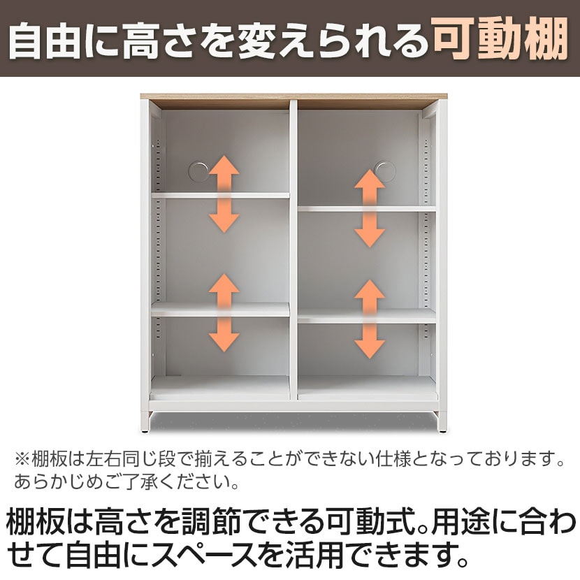 棚板は高さを調節できる可動式。用途に合わせて自由にスペースを活用できます。取り外しも可能です。