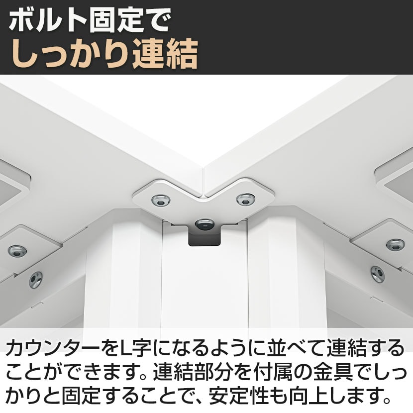 ローカウンターをL字になるように並べて連結することができます。連結部分を付属の金具でしっかりと固定することで、安定性も向上します。