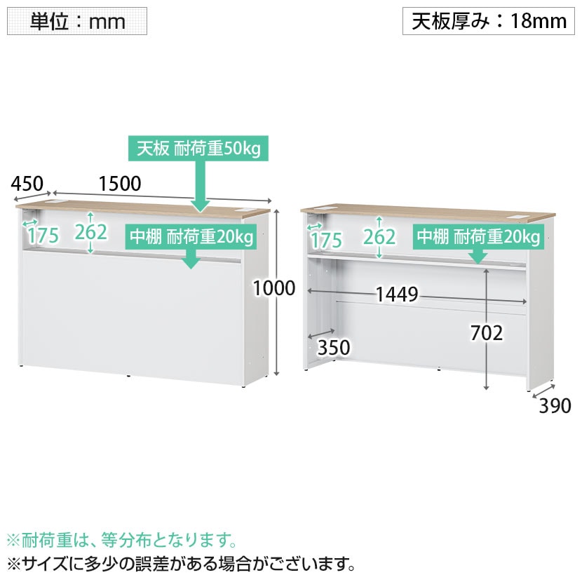 立ったままでの接客に丁度いい高さ1000mmのハイカウンターです。お客様側と執務側の両側に、手荷物や備品が置ける便利な中棚付き。カウンター周りをすっきり整理でき、通路の動線もスムーズに。スチール製で耐久性に優れ、さらに粉体塗装を施しているので指紋などの汚れが目立ちにくく、日々のお手入れ負担を軽減します。スタンダードなデザインと木目調を含む豊富な4色のラインナップで、公共施設から商業施設、オフィスまで様々な空間に馴染みます。