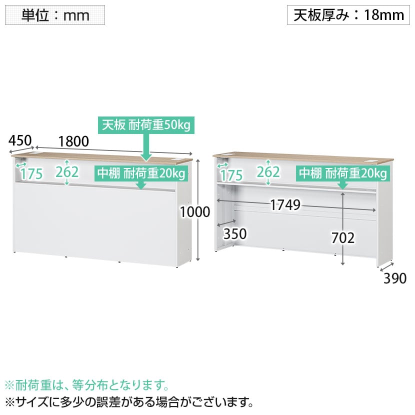 立ったままでの接客に丁度いい高さ1000mmのハイカウンターです。お客様側と執務側の両側に、手荷物や備品が置ける便利な中棚付き。カウンター周りをすっきり整理でき、通路の動線もスムーズに。スチール製で耐久性に優れ、さらに粉体塗装を施しているので指紋などの汚れが目立ちにくく、日々のお手入れ負担を軽減します。スタンダードなデザインと木目調を含む豊富な4色のラインナップで、公共施設から商業施設、オフィスまで様々な空間に馴染みます。