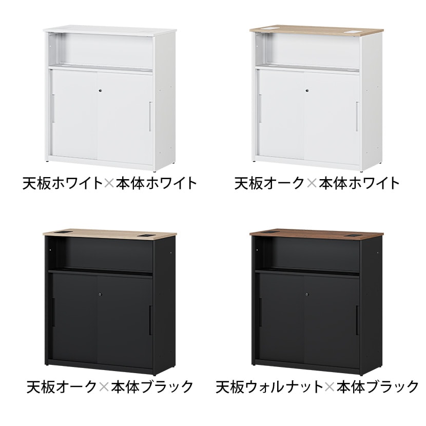 書類や備品をすっきり収納。引き違い扉付きスチール製ハイカウンター