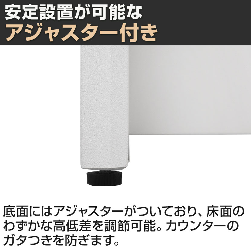 底面にはアジャスターがついており、床面のわずかな高低差を調節可能。カウンターのガタつきを防ぎます。