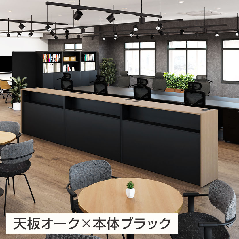 フリーアドレスと共有スペースの間に配置したり、フリーアドレスのエンドに設置したりすることで間仕切り兼収納としても活躍。空間の境界を作りつつ、共有資料や備品をすぐに取り出せる場所に保管できます。