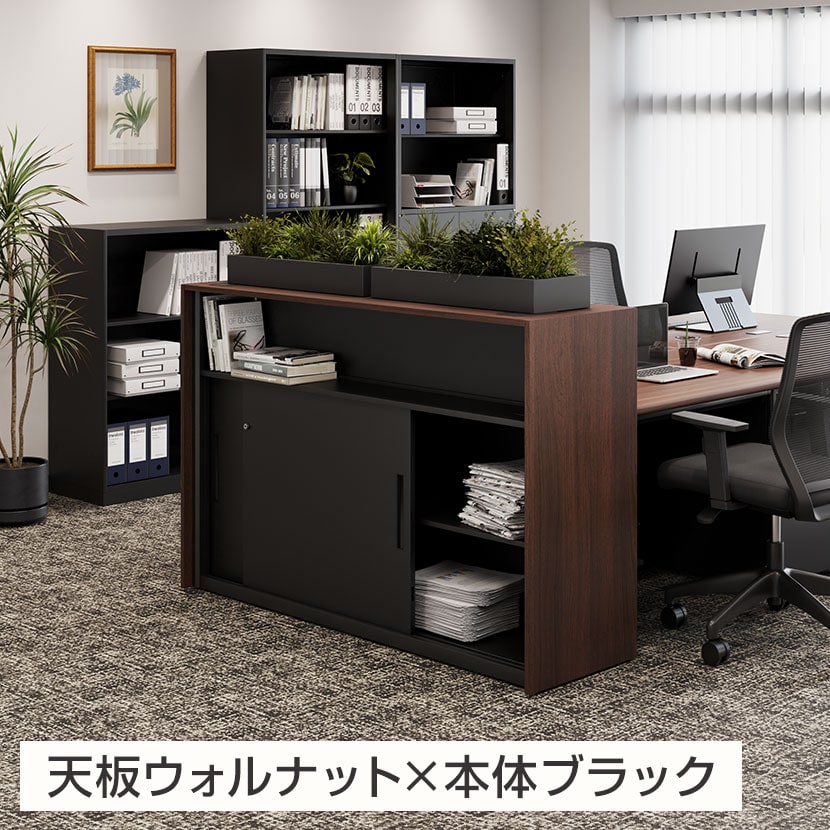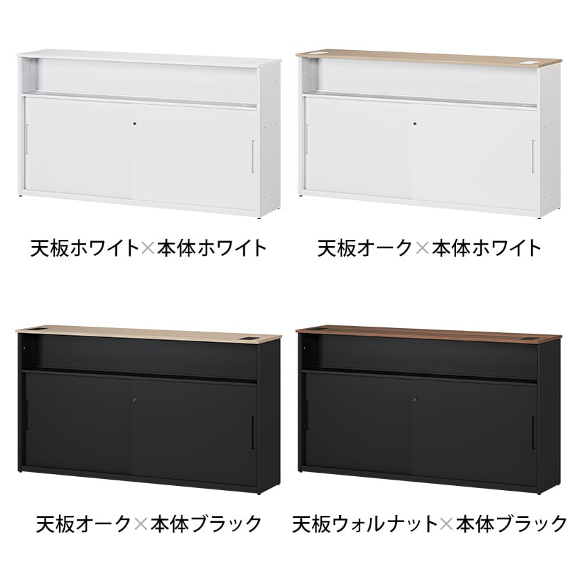 書類や備品をすっきり収納。引き違い扉付きスチール製ハイカウンター