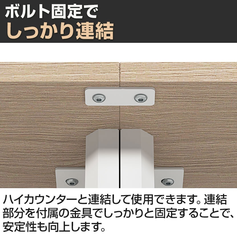 ハイカウンターと連結して使用できます。連結部分を付属の金具でしっかりと固定することで、安定性も向上します。