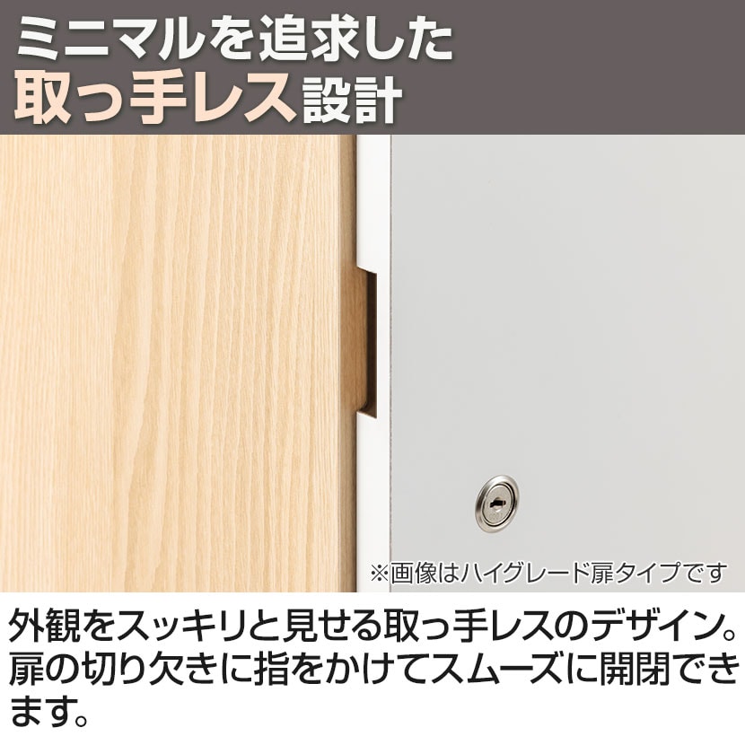 外観をスッキリと見せる取っ手レスのデザイン。扉の切り欠きに指をかけてスムーズに開閉できます。