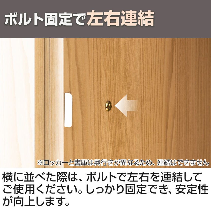 横に並べた際は、ボルトで左右を連結してご使用ください。しっかり固定でき、安定性が向上します。