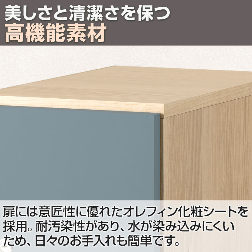 扉には、意匠性と環境配慮に優れたオレフィン化粧シートを採用。汚れが付きにくく、水も染み込みにくいため、お手入れが簡単で美しさを保てます。