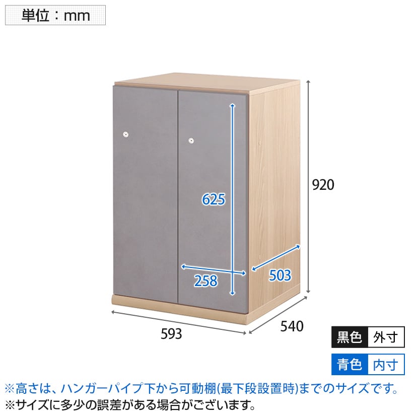 オフィス空間に調和する高いインテリア性を実現。 Variestシリーズ|木製ロッカー2人用ハーフ