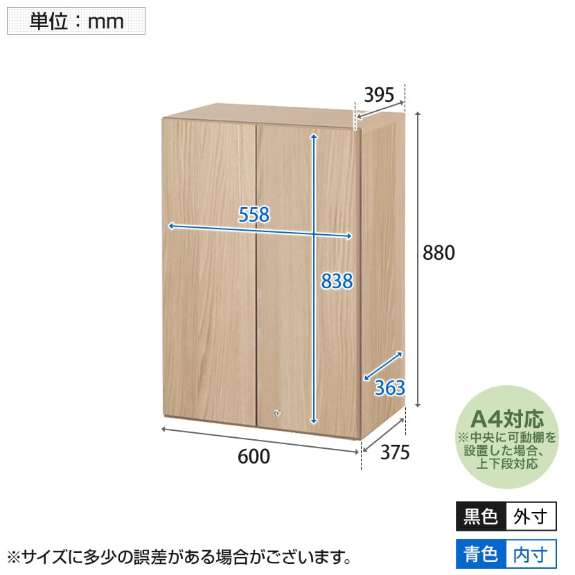書庫内部はA4ファイルを縦・横置き可能な大きさ。デスク周りの整頓や利便性向上に役立ちます。