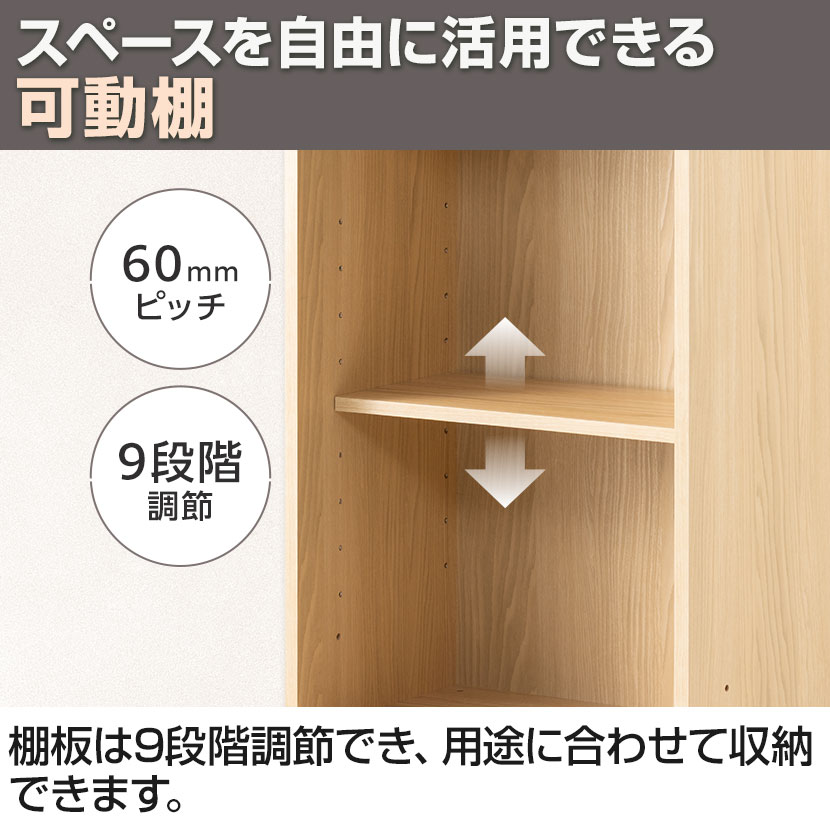 棚板は9段階調節でき、用途に合わせて収納できます。