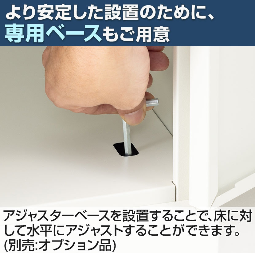オプションのアジャスターベースを設置することで、床に対してロッカーを水平にアジャストすることができます。(別売:オプション品)
