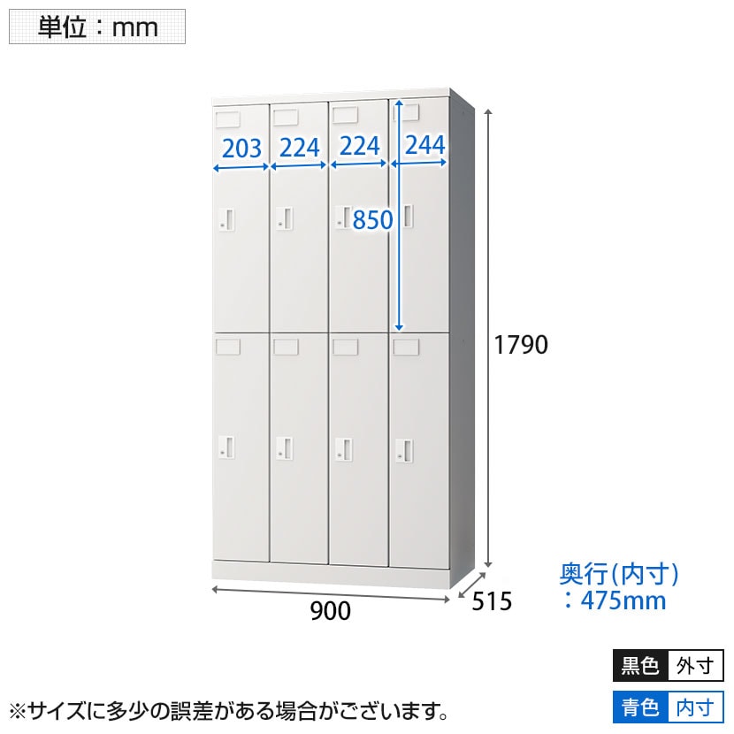 ロッカー有効内寸(中央) / 幅224×奥行475×高さ1690mm