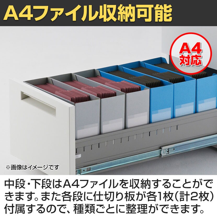 付属品 / 鍵付き(リバーシブルキー)、仕切り板 各段1枚(片袖中段、下段)