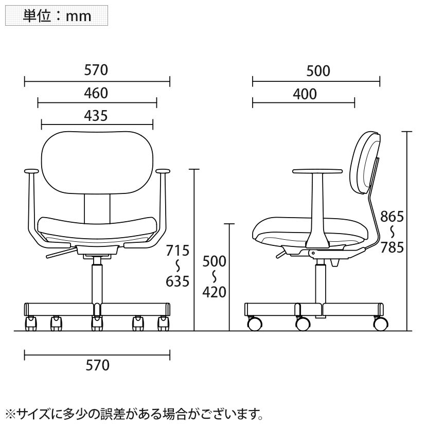 肘 / 高さ635~715mm