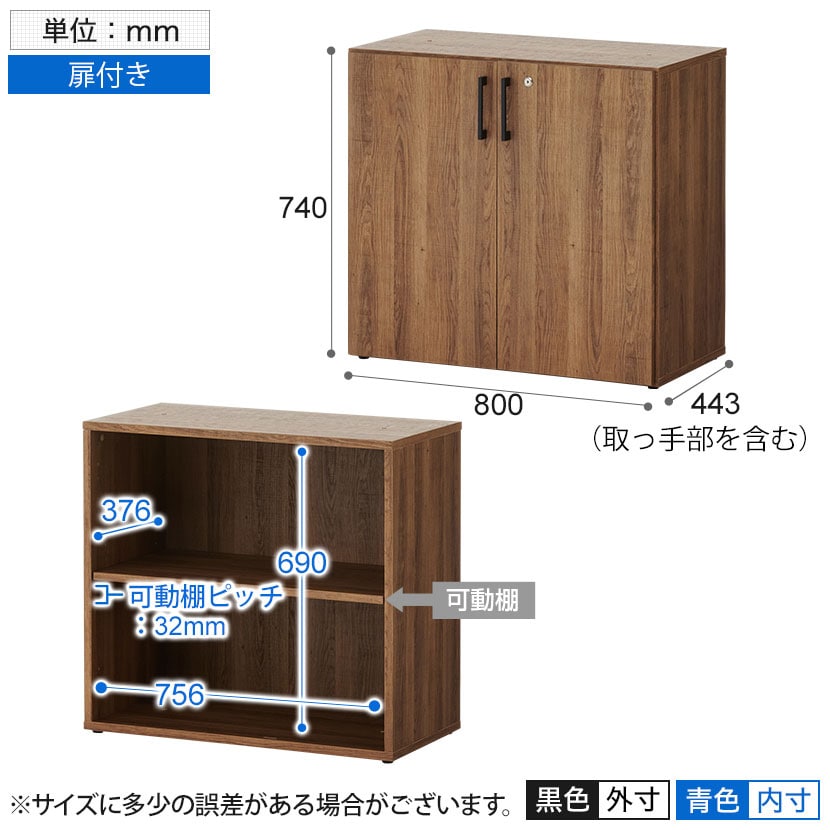 ※両開き扉付き(鍵付き、ソフトクローズ機構付き)