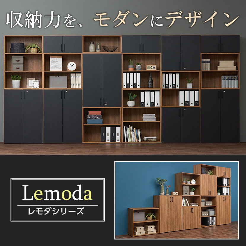 オープンと扉付きを最大6段組み合わせて、収納力・統一感・デザイン性の高い収納空間が広がる木製キャビネット「Lemoda」の2段下置き用両開き棚です。A4に対応し、棚位置は5段階調整可能。扉はソフトクローズ機構を採用し、施錠管理できる鍵付きです。扉カラーは手触りまで本格的なホワイトとナチュラル(本体同色)、シックなブラックの3色。「機能性だけでなく、デザイン性も大切にしたい」という声にお応えする、モダンな収納シリーズです!