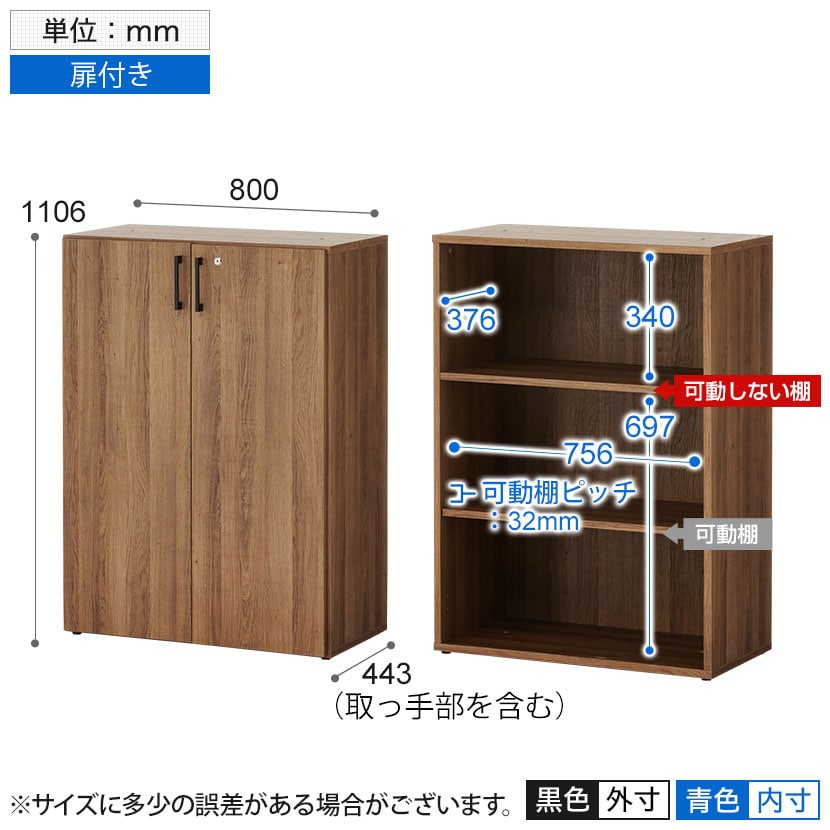 ※両開き扉付き(鍵付き、ソフトクローズ機構付き)