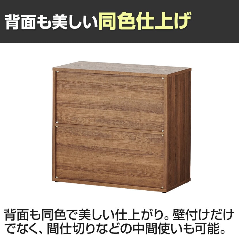 キャビネットの背面も同色で美しい仕上がり。壁付けだけでなく、間仕切りなどの中間使いも可能です。