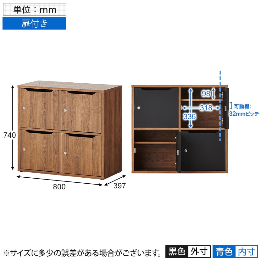 棚板の位置や有無に関係なく、A4サイズの書類を横置きで収納可能。扉を開けた時に、投函された書類も落下しにくい広さがあり、下段には私物を収納できます。