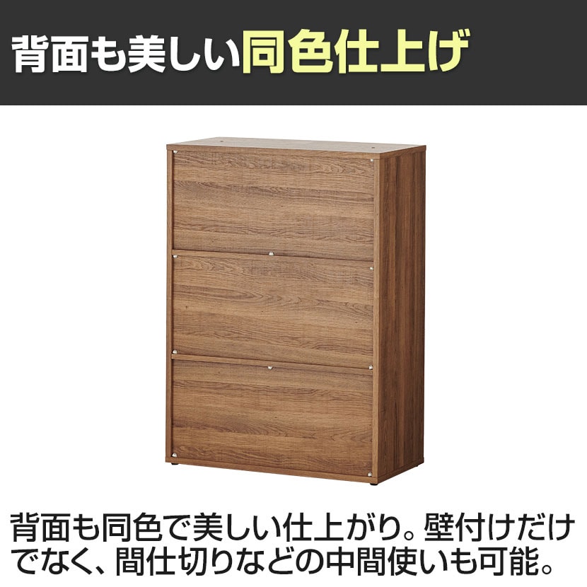 キャビネットの背面も同色で美しい仕上がり。壁付けだけでなく、間仕切りなどの中間使いも可能です。