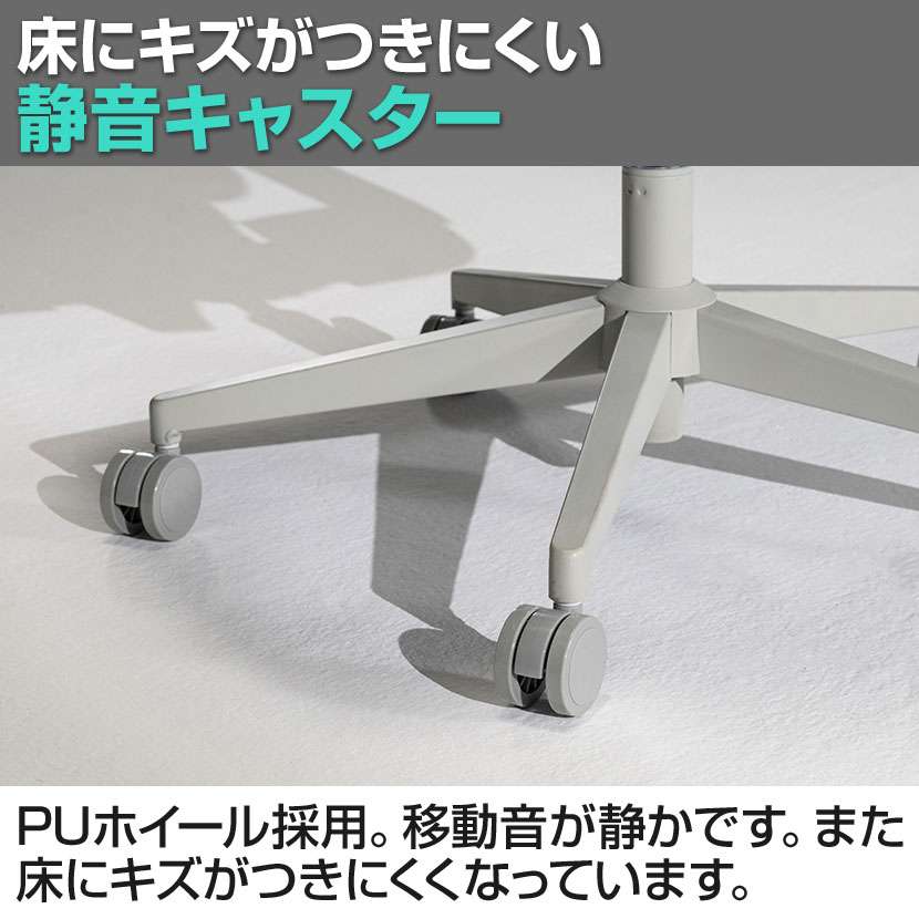PUホイール採用。チェアを動かす時の移動音が静かです。また床にキズがつきにくくなっています。