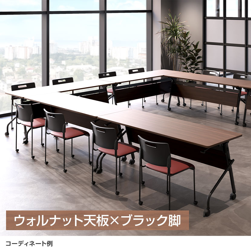 中棚をなくした開放的なデザインで、足元の窮屈さを解消。長時間の会議やセミナーでも集中力を維持しやすい設計です。使わないときはサッと重ねて片付けられ、収納も省スペース。天板には傷や汚れに強いメラミン素材を採用し、日常的な使用にも安心です。コストパフォーマンスに優れ、少人数から大人数まで会議や研修などに幅広くご使用いただけます。