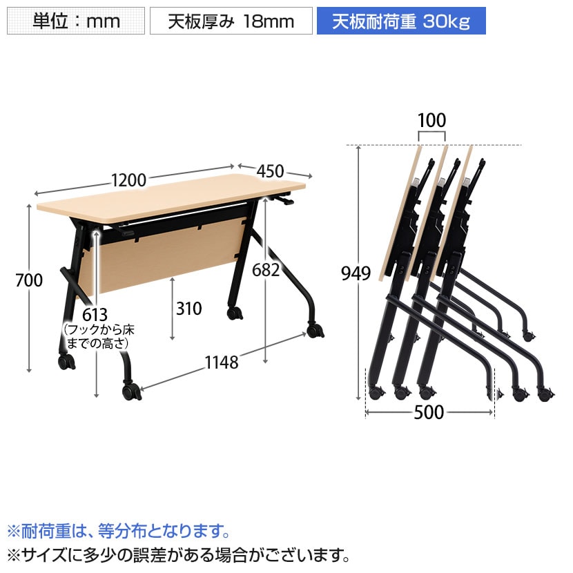 片手でラクラク折りたたみ!足元ゆったり×省スペース収納の平行スタッキングテーブル