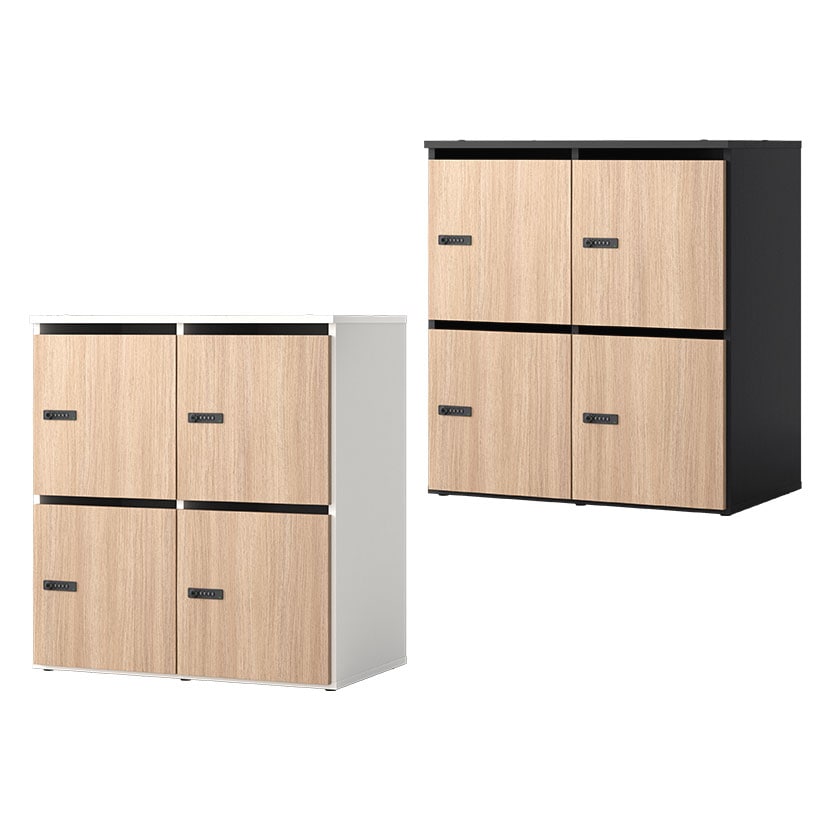 本体カラーはナチュラルな扉にマッチする「明るいホワイト」と「シックなブラック木目」をご用意。オフィスの雰囲気に合わせて選べる2つのバリエーションで、一体感のある洗練された空間づくりをサポートします。