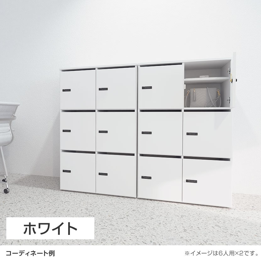 スチール製にはない木製の温かみはそのままに、空間の統一感をさらに高めるワンカラーモデルです。扉から本体までを単色(ホワイトまたはブラック)で仕上げた主張しすぎない「ナチュラルモノトーン」のデザインが、オフィスのインテリアとシームレスに調和します。「ロッカーを置きたいけれど、空間の印象を壊したくない」というニーズに応え、ミニマルで飽きのこないデザインながら、カギ管理不要のダイヤル錠、A3対応の投函口、十分な収納力など、利便性も妥協しない設計です。