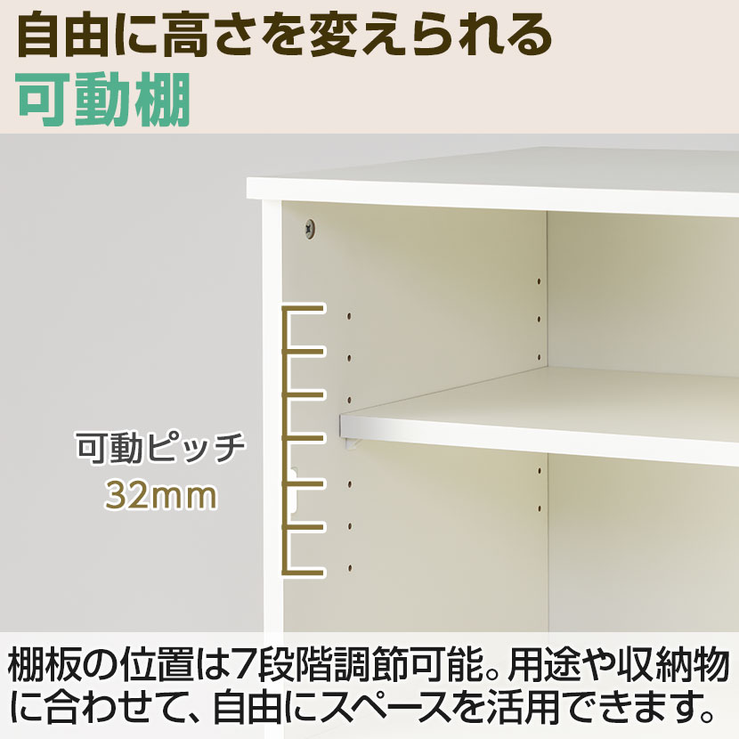 棚板の位置は、7段階に高さを調節可能。用途や収納物に合わせて、自由にスペースを活用できます。