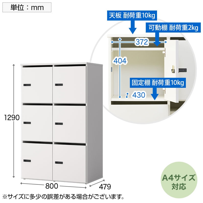 扉上部の投函口により、不在時の書類配布がスムーズに。A3封筒にも対応し、個人の受け渡し業務の手間を削減します。