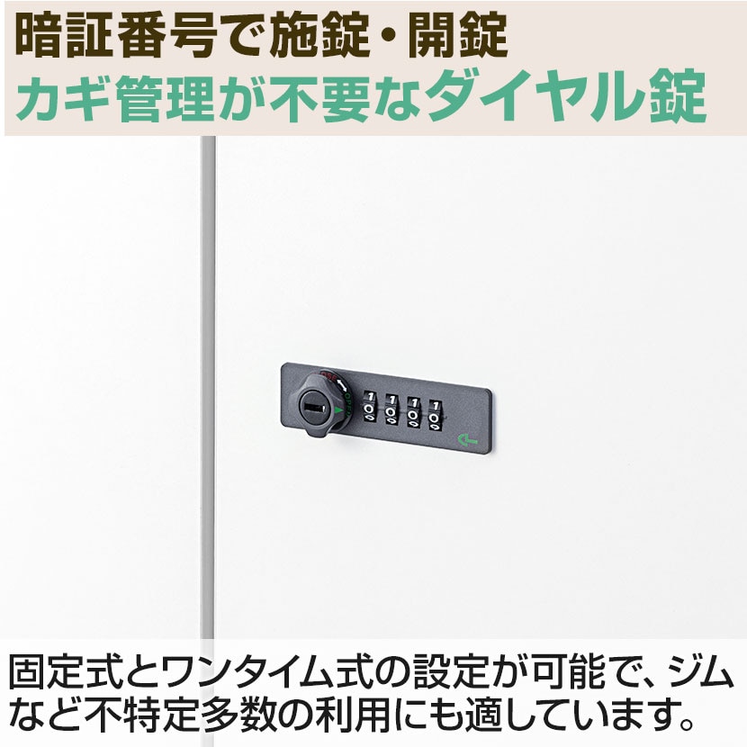 暗証番号で施錠・開錠。暗証番号は固定式(パーソナル)とワンタイム式(パブリック)の設定が可能で、ジムなど不特定多数の利用にも適しています。