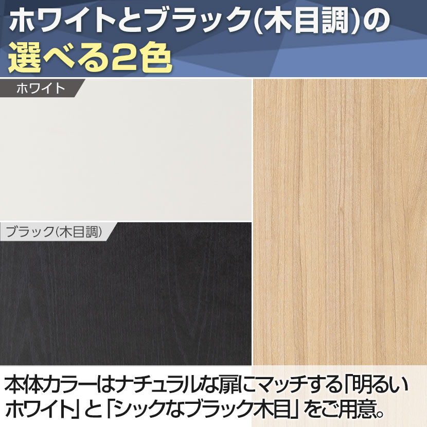 温かみのある木目調の扉に合わせて、本体は明るいホワイトとシックなブラックの2色展開。ブラックには木目調の加工を施しました。